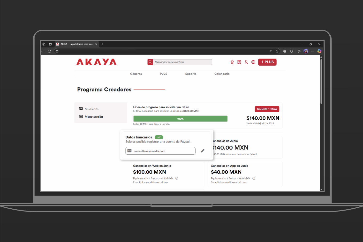 Nuestro equipo revisará estos datos antes de procesar tu pago, pero ten en consideración que el autor es el único responsable de que esta información sea correcta. Akaya no se hace responsable por errores en el depósito si los datos fueron proporcionados de forma incorrecta. Puedes encontrar más información sobre esto en lo términos y condiciones del programa